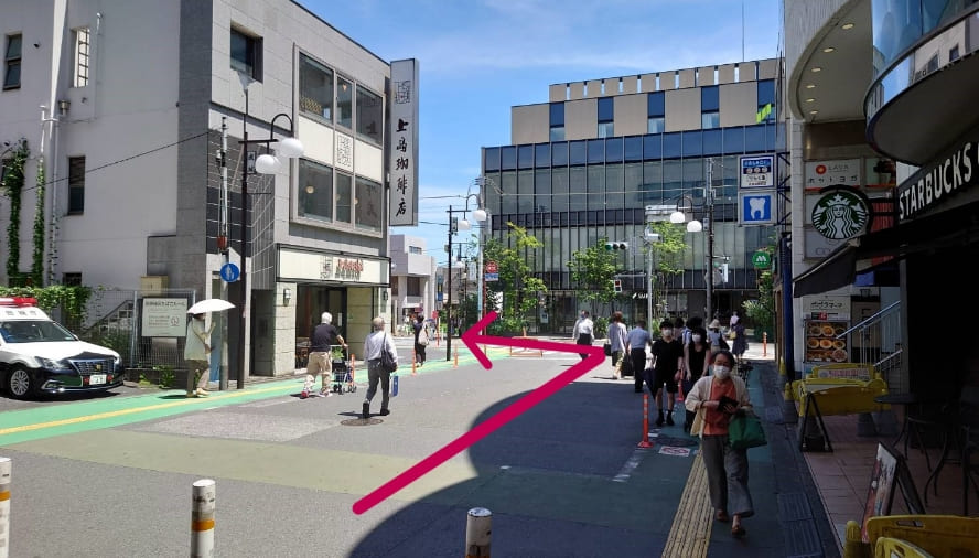 左手にある上島珈琲の先を左に曲がります