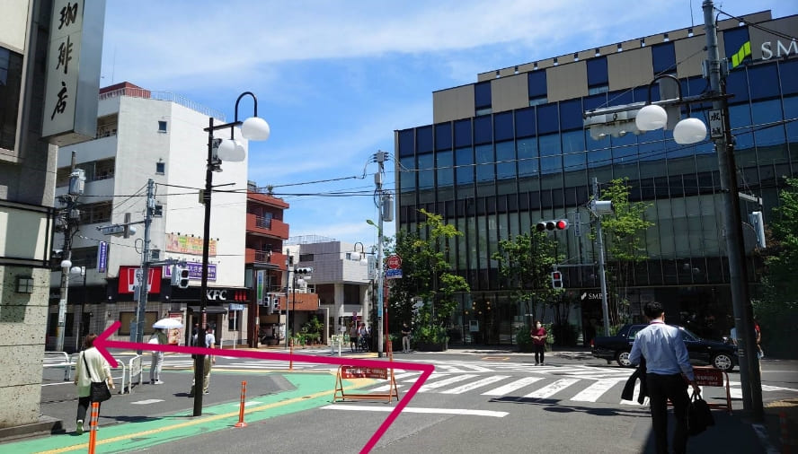小田急線「成城学園前駅」の南口の改札を出て右方向へ進みます