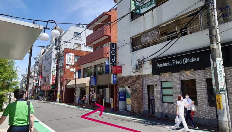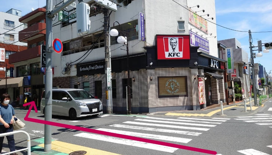 反対側に見えるケンタッキー・フライド・チキンを通り過ぎます